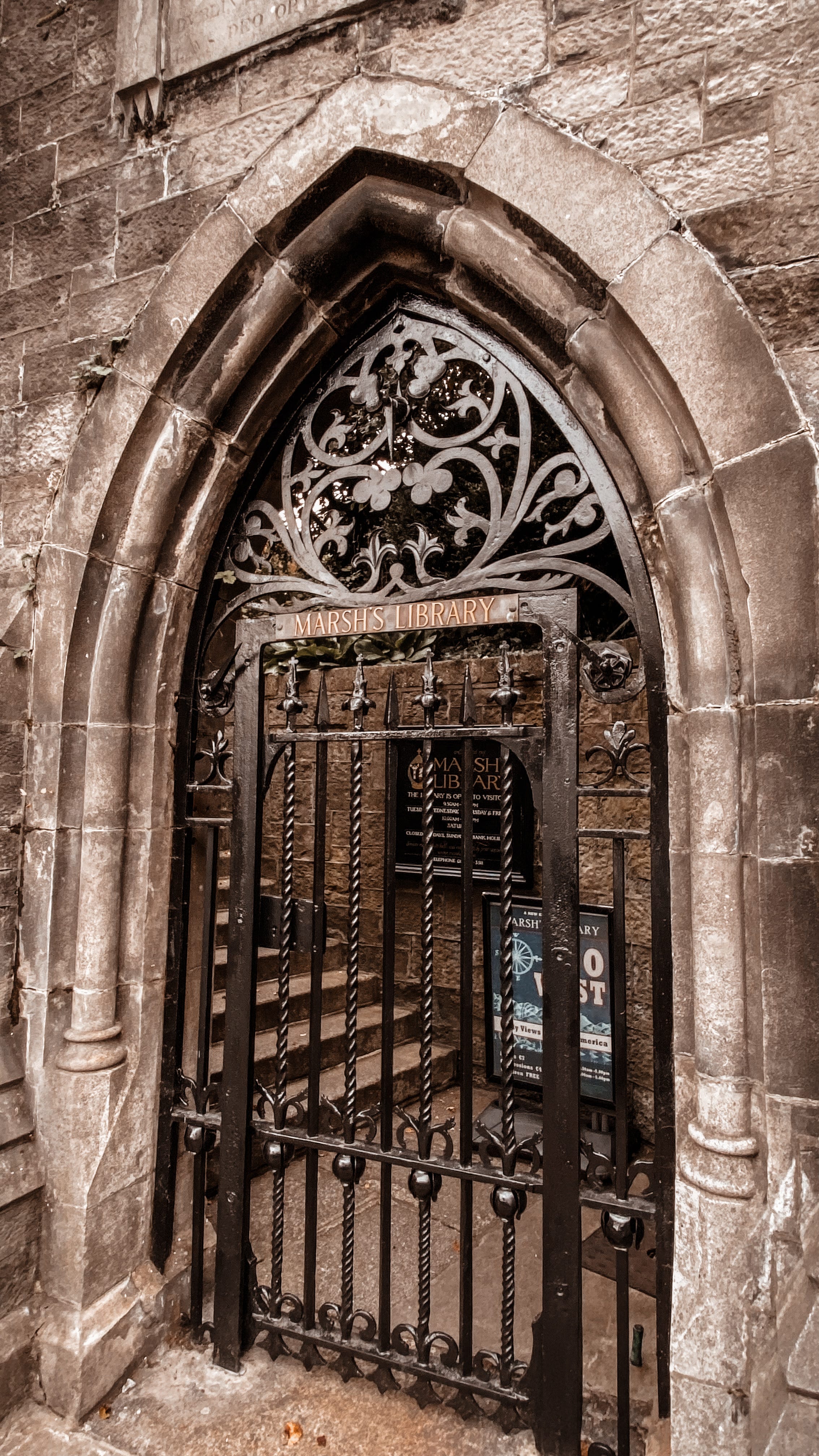 Founded in 1707 and situated right beside St Patrick’s Cathedral, Marsh’s was Ireland’s first public library. The magnificent Gothic gate leading into the library makes it feel as if we are walking through a portal into another world. Inside, the tall bookcases adorned with crowns and gilded mitres stand virtually untouched since the time they were built . This place of calm and mystery is where Bram Stoker used to work at a table which is actually still there.